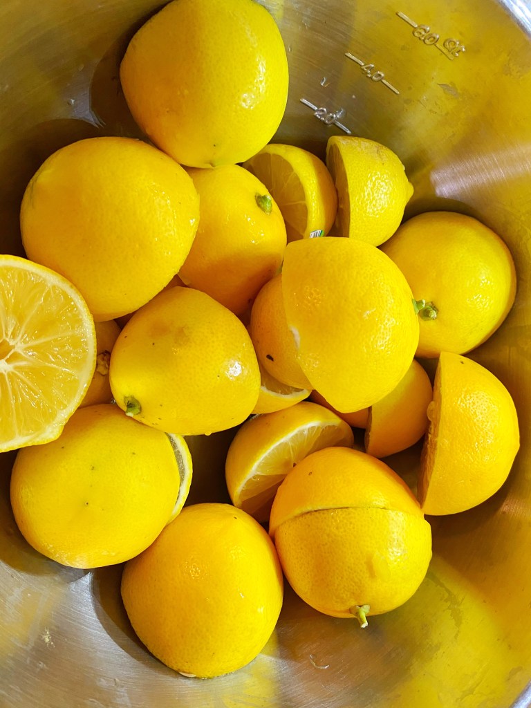 β’ 20 large lemons (thatβs a lot of tart juice) I used meyer lemons from our garden